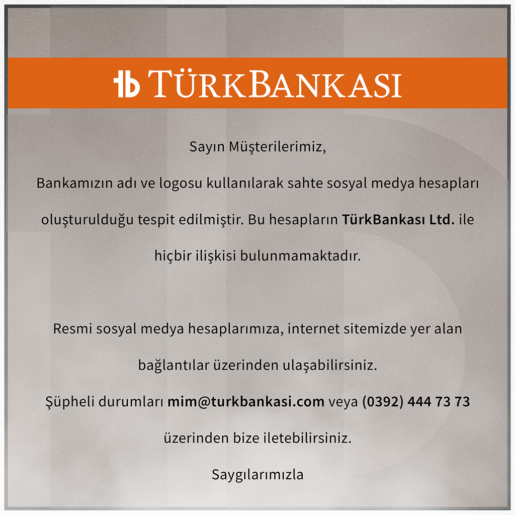 UBAN (Ulusal Banka Hesap Numarası) sorgulama ve doğrulama işlemleri sadece TürkBankası hesapları için geçerlidir. Hatalı girişler sonucunda elde edilen verilerle ilgili olarak TürkBankası Ltd.’in hiçbir sorumluluğu bulunmamaktadır.